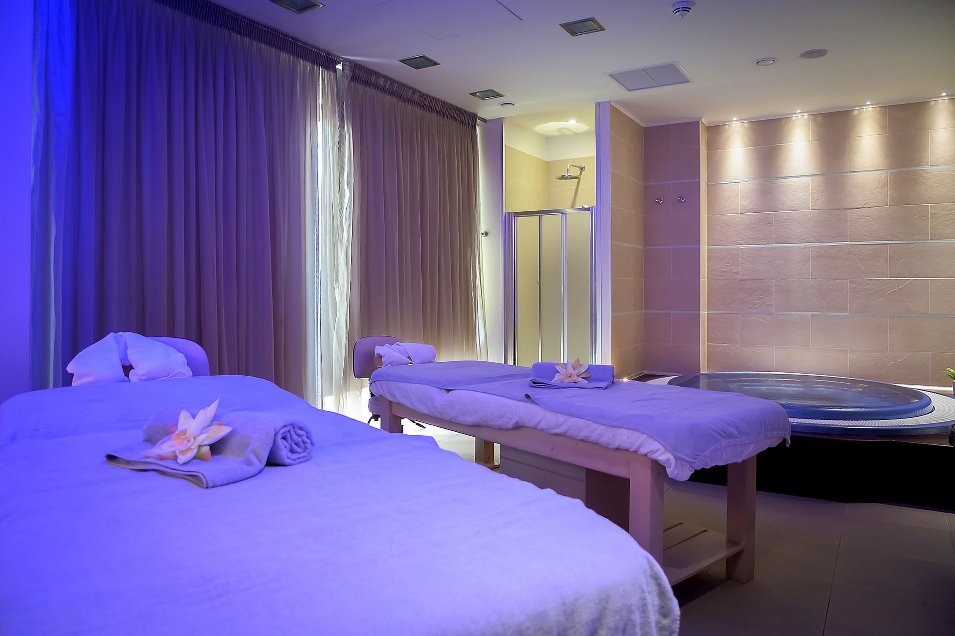 Δύο κρεβάτια θεραπειών σε κάθε σουίτα προσφέρουν τη δυνατότητα για εξατομικευμένες συνεδρίες μασάζ και περιποίησης, καθιστώντας τη Galini και Oxygen Spa Suites ιδανικές για ζευγάρια ή παρέες που αναζητούν μια ιδιωτική εμπειρία ευεξίας.