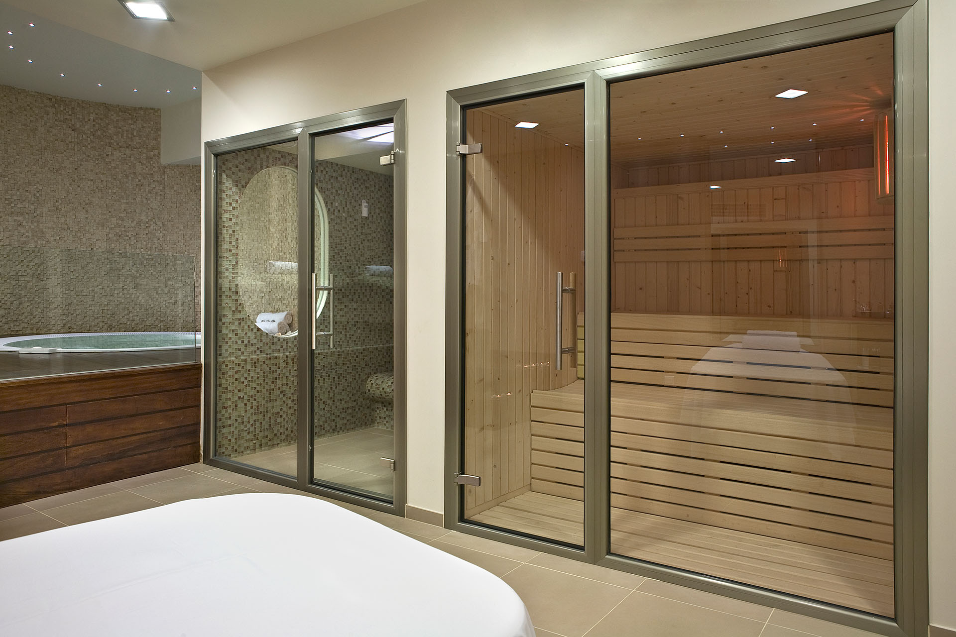 Πρόκειται για έναν πλήρως εξοπλισμένο ιδιωτικό χώρο spa, ιδανικό για ζευγάρια, παρέες ή και μεμονωμένους επισκέπτες που επιθυμούν να απολαύσουν τις παροχές ενός spa με αποκλειστικότητα. Η σουίτα διαθέτει χαμάμ,σάουνα και jacuzzi για έως τέσσερις επισκέπτες, lifestyle shower, καθώς και χώρο χαλάρωσης με ανατομικές θερμαινόμενες ξαπλώστρες.