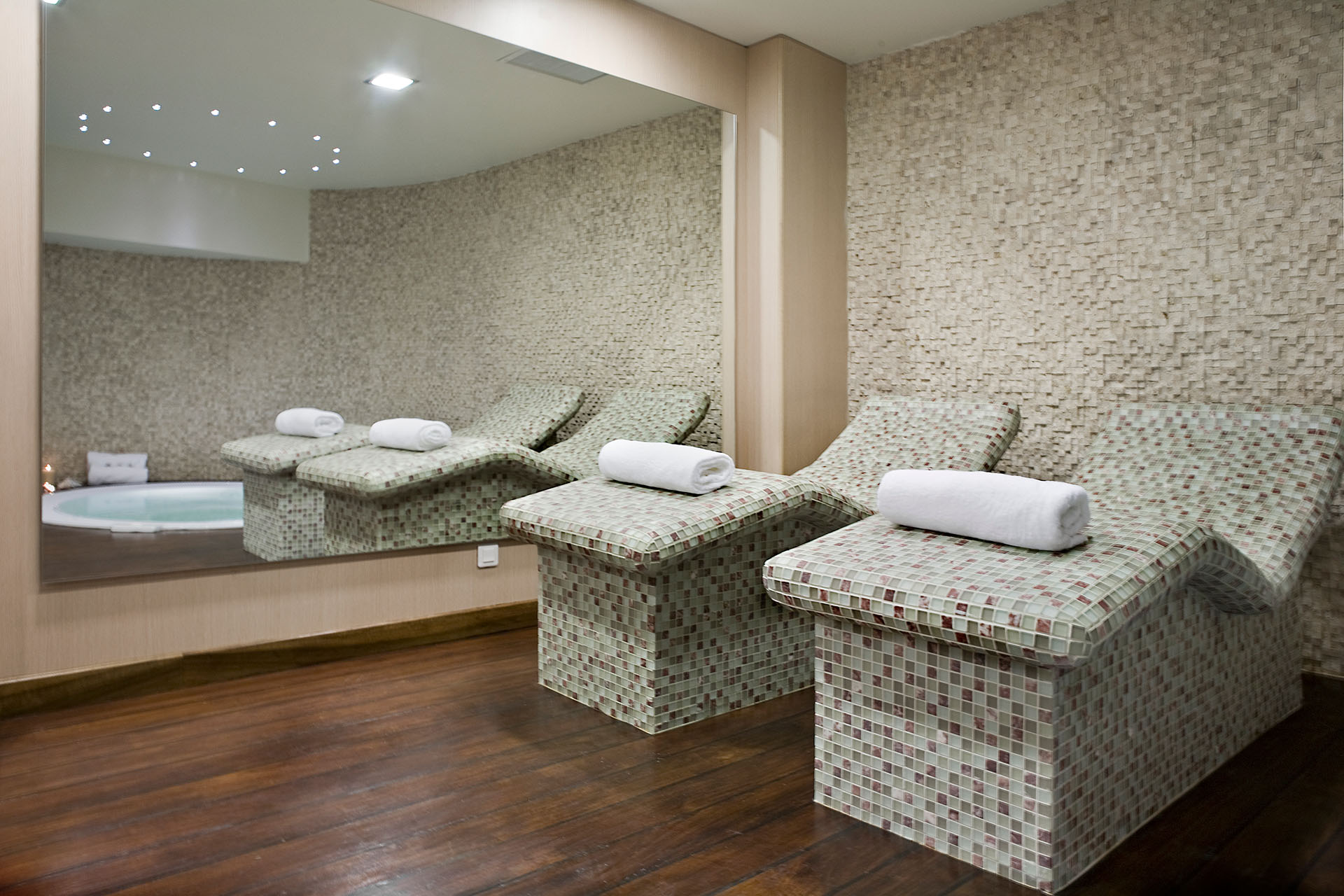 Οι σουίτες διαθέτουν ιδιωτική πισίνα jacuzzi, όπου το νερό και οι φυσαλίδες δημιουργούν μια αίσθηση βαθιάς χαλάρωσης και ευφορίας. Οι χώροι χαλάρωσης (relax areas), με απαλό φωτισμό και ζεστές γήινες αποχρώσεις, προσκαλούν τους επισκέπτες να απολαύσουν στιγμές ησυχίας και γαλήνης, μακριά από το άγχος της καθημερινότητας.
