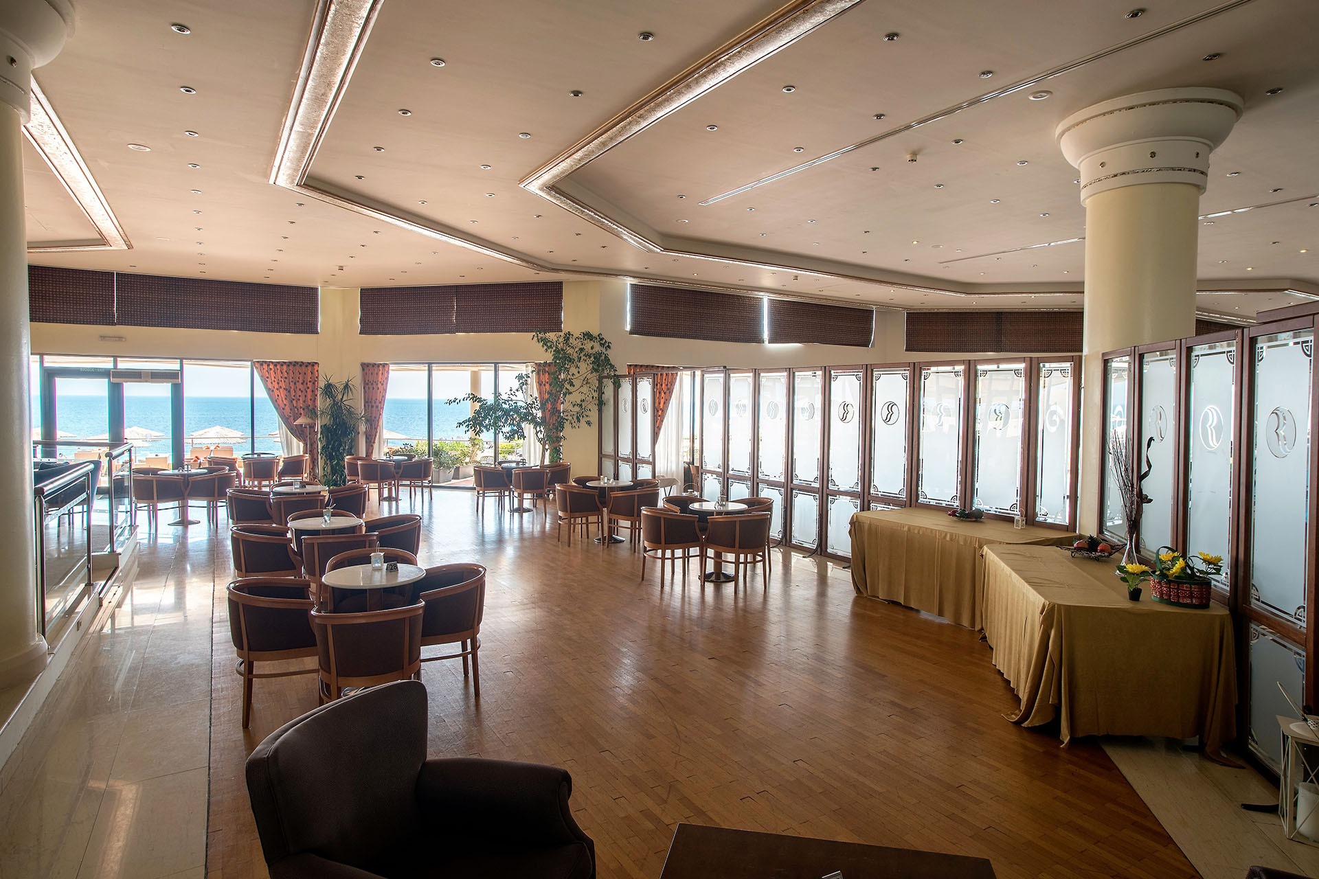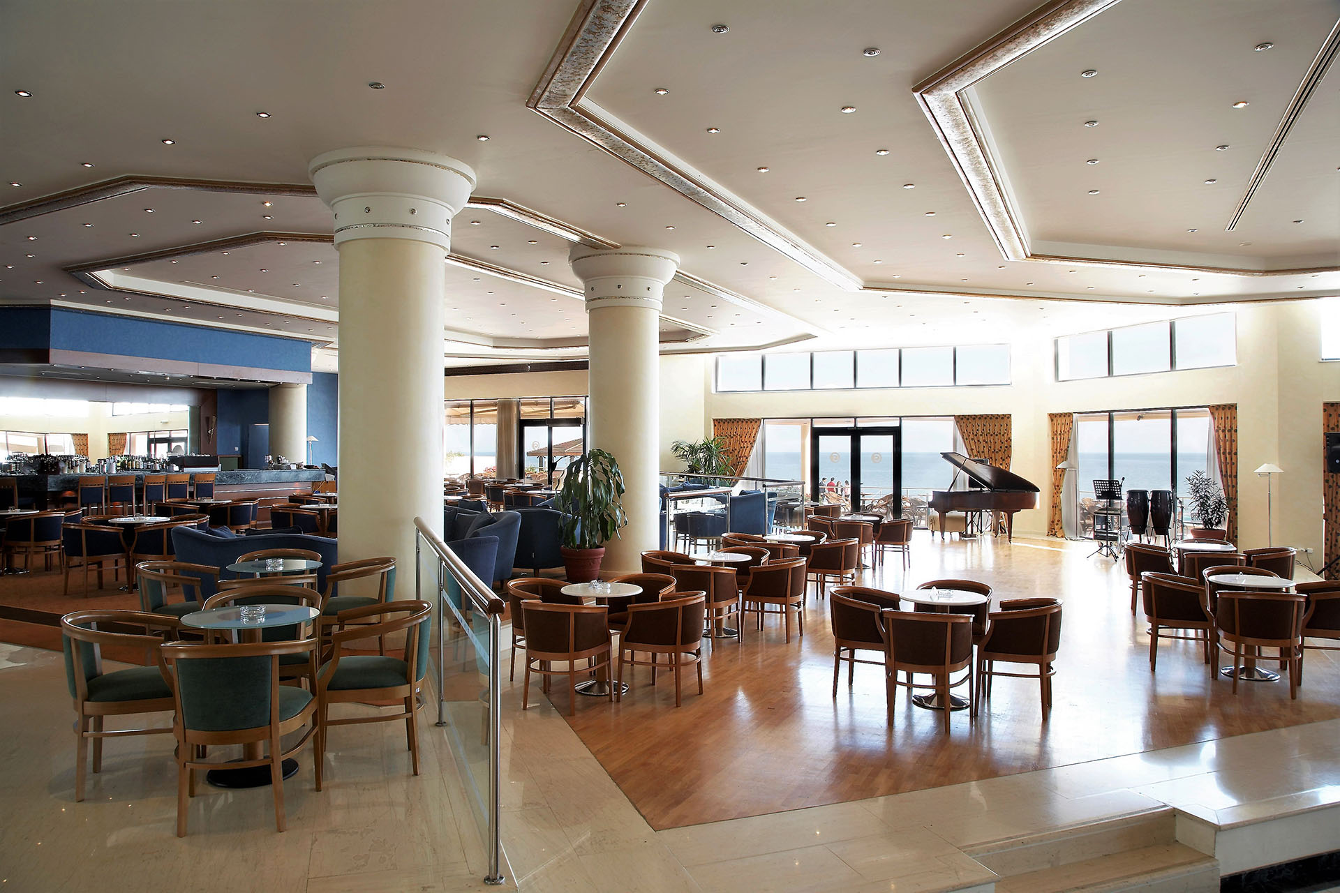 Το βράδυ, το “Thalassa” μεταμορφώνεται σε έναν κομψό χώρο χαλάρωσης, όπου μπορείτε να απολαύσετε το ποτό ή το κοκτέιλ σας με τη συνοδεία απαλής μουσικής.