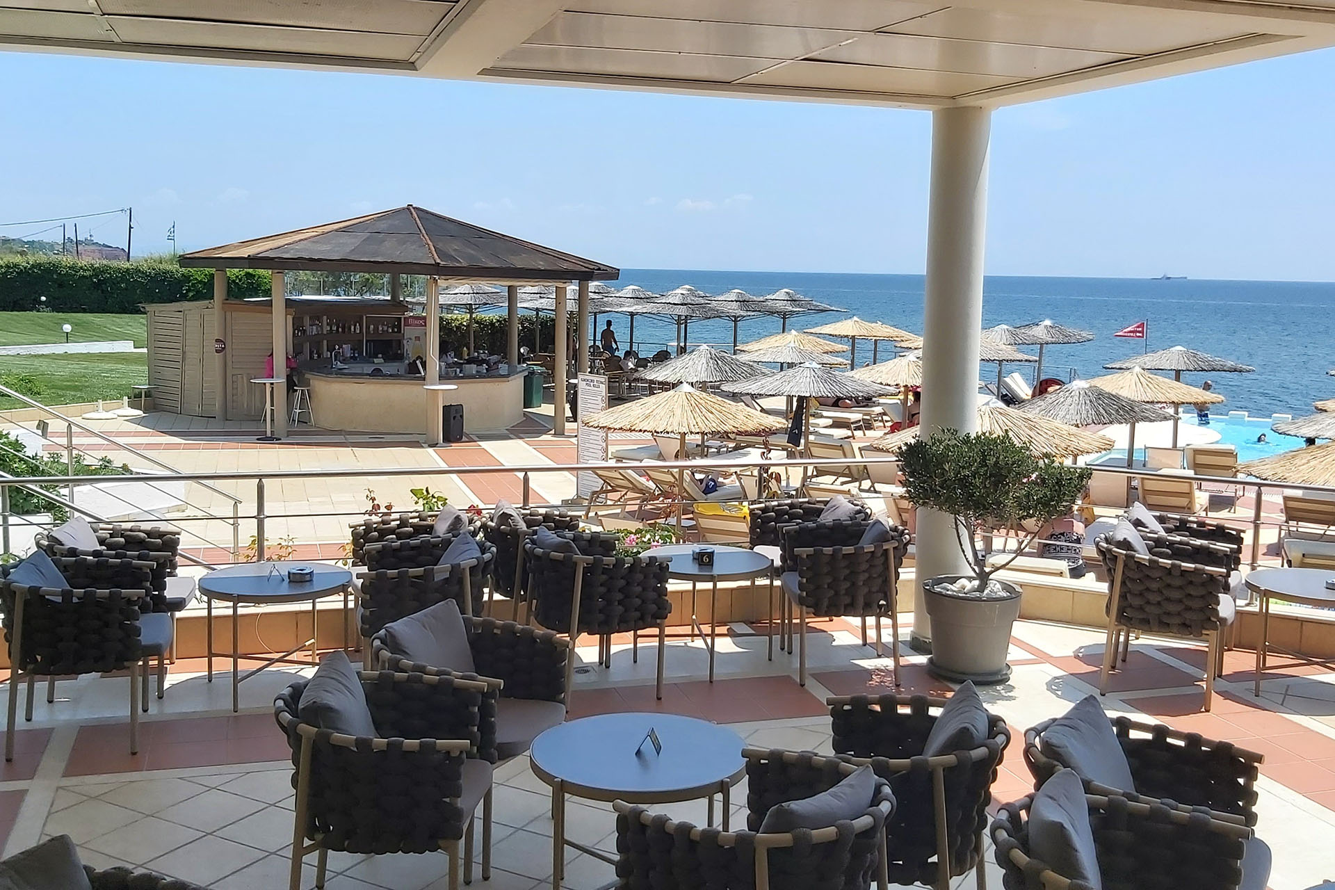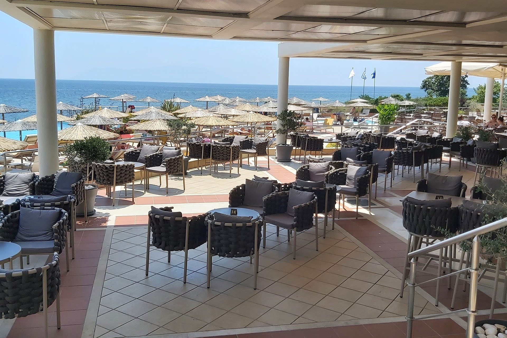 Απολαύστε τον αγαπημένο σας καφέ ή ένα δροσιστικό ρόφημα στη βεράντα με θέα στο απέραντο Αιγαίο Πέλαγος, αφήνοντας το βλέμμα να ταξιδέψει στη θάλασσα και στη Σαμοθράκη.